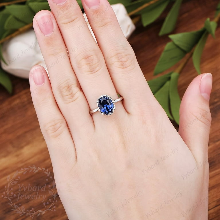 Oval Solitaire Sapphire Ring Oval Cut Blue Sapphire Ring Sapphire