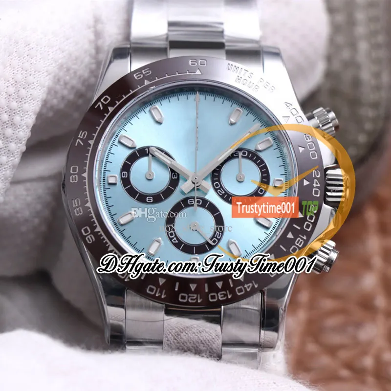 Reloj de cronógrafo automático para hombres con bisel de cerámica marrón, dial azul, brazalete de acero inoxidable 2024 Super Edition