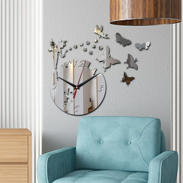 Reloj de pared 3D Relojes de mariposa Calcomanía de arte Acrílico