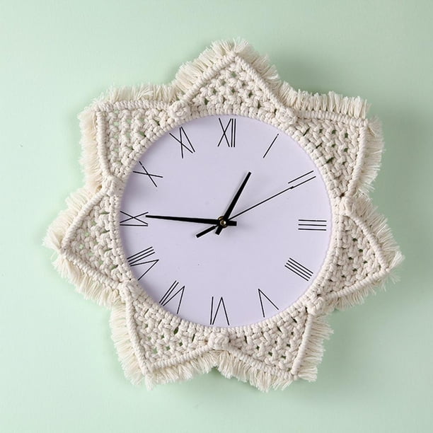 Relojes de pared decorativos de cuerda de de macramé, reloj de silencioso por Fondo de pequeña sala de TV, reloj sin Flor Romano Flor romana