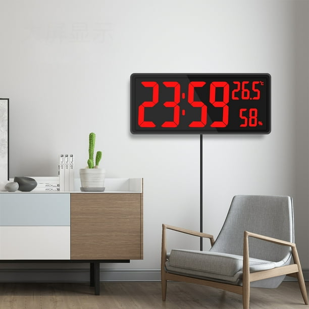 - Reloj digital de pared con pantalla grande, con temperatura y