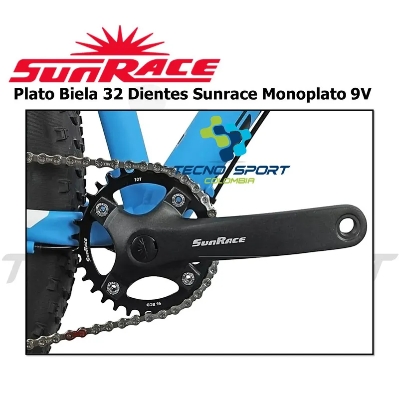 Plato Biela Bicicleta 32D Sunrace Monoplato 9Velocidades Mtb