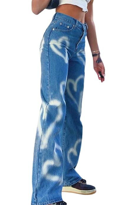 - Summer Grey Womens Jeans High Waist Baggy Casual Vintage Y2K Trend