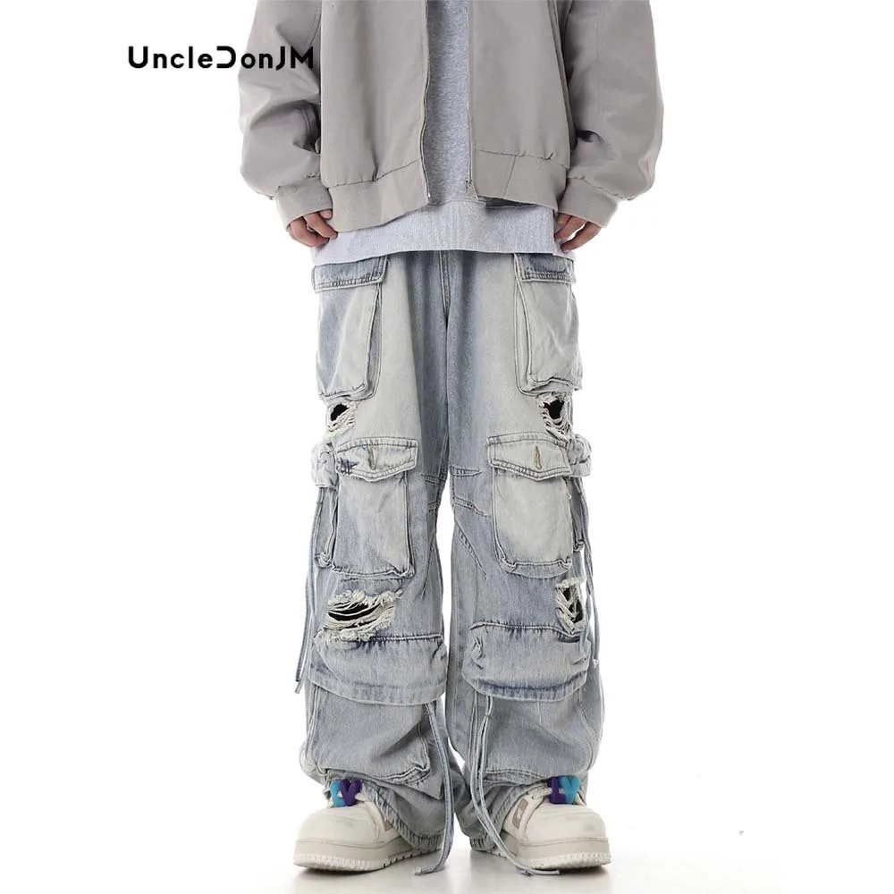 - Pantaloni Cargo Jeans Multi tasche pantaloni dritti Casual in