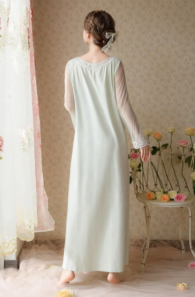 - Pure Cotton Vintage Nightgown Women Spring Autumn Long Sleeve Lace