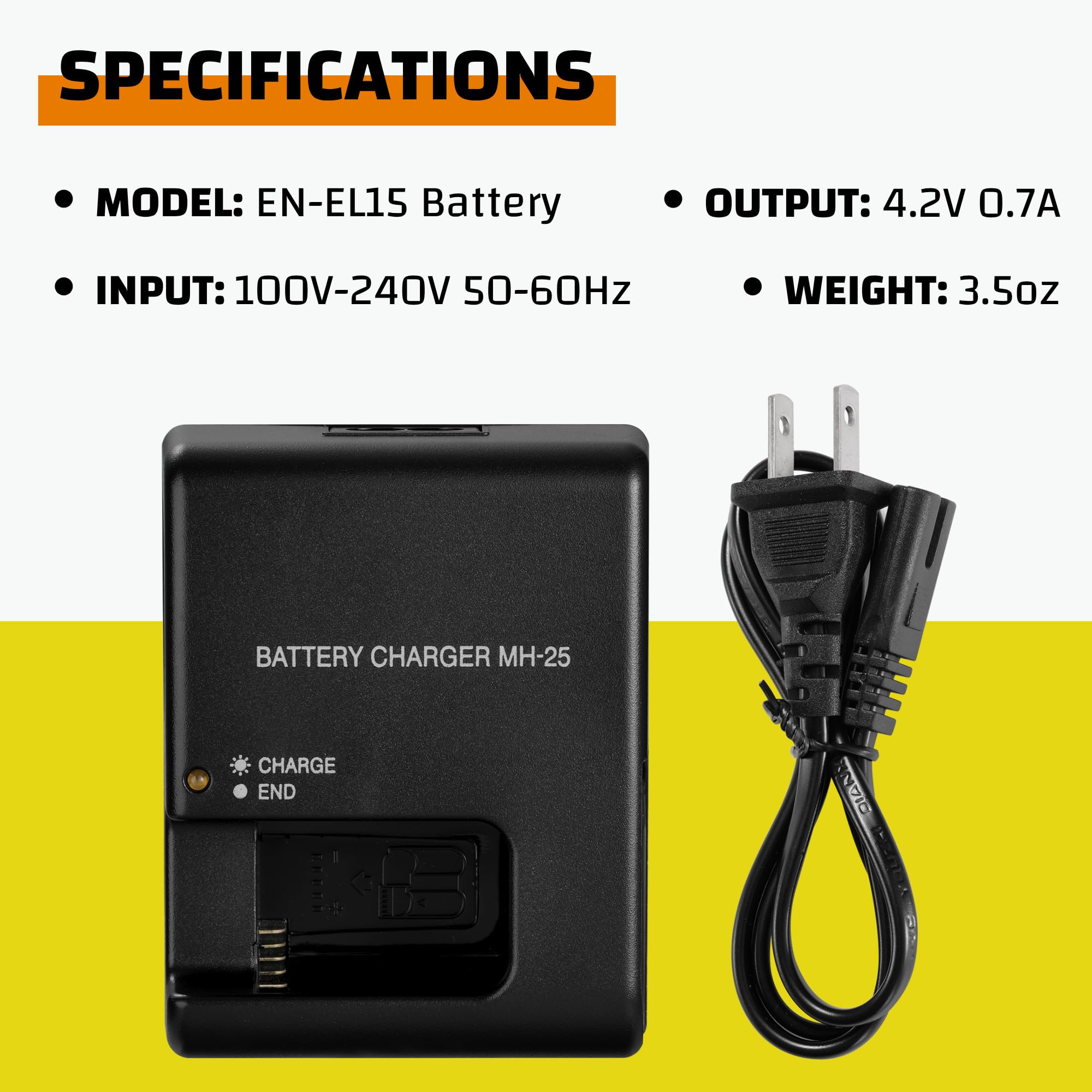 - Nikon Coolpix Charger MH-25 Charger For Nikon EN-EL15 Batteries
