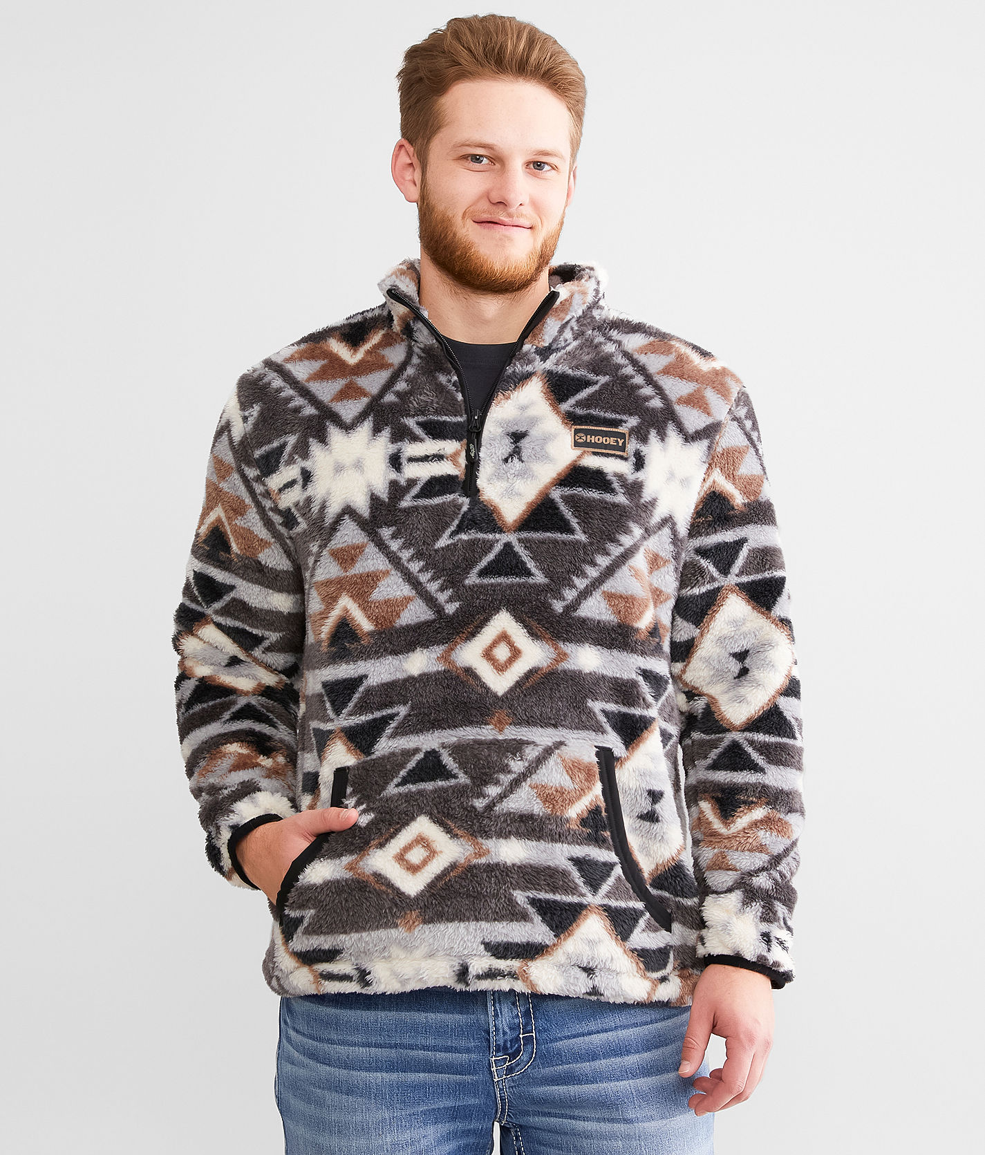 - Rock and Roll Cowboy Men's Dark Brown Aztec Print 1/4 Zip Sherpa