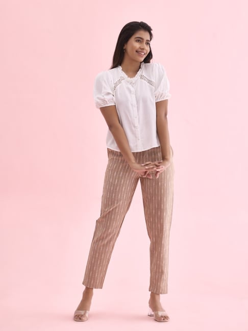 - Go Colors Rust Linen Pants Shop Priya Chaudhary Women Beige Brown