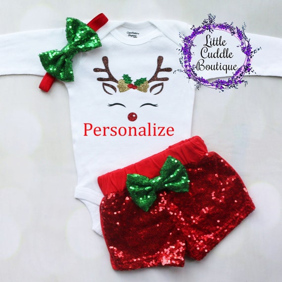 Personalized Reindeer Christmas Baby Shorts Outfit, Holiday Outfit, Size Chart for Shoes TheOlawaleBrand Cheap Sale