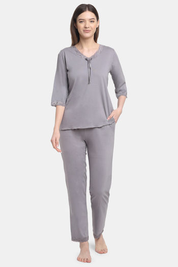 Grey Modal Fabric Nightwear Womens Soft Modal Pajamas Set Piece