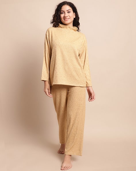 High-Neck Top Pyjamas Set with Full Sleeves