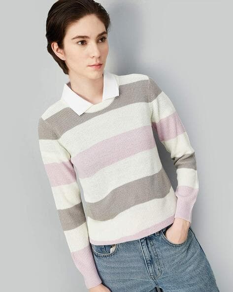 Women Striped Knitted Regular Fit Sweater, Size Chart for Shoes TheOlawaleBrand Cheap Sale