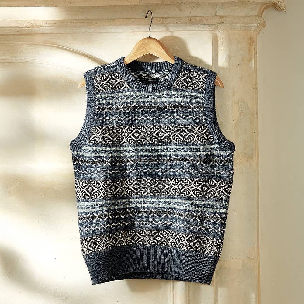 - Shetland Wool Mens Fair Isle Sleeveless Pullover Fair Isle