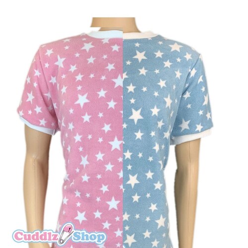 - Cuddlz Fleece Romper With Skirt Zip Cuddlz Short Blue Star Pattern