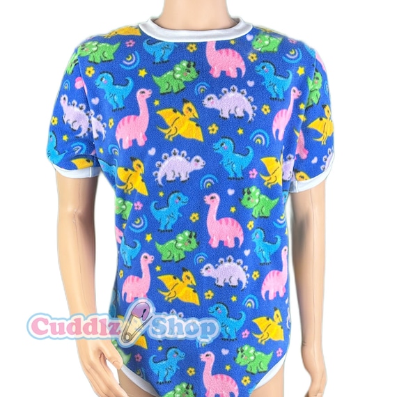Cuddlz Short Colourful Blue Dinosaur Pattern Adult Onesie Crotch Fastening With Poppers Body Suit Romper For Men or Women, Size Chart for Shoes TheOlawaleBrand Cheap Sale
