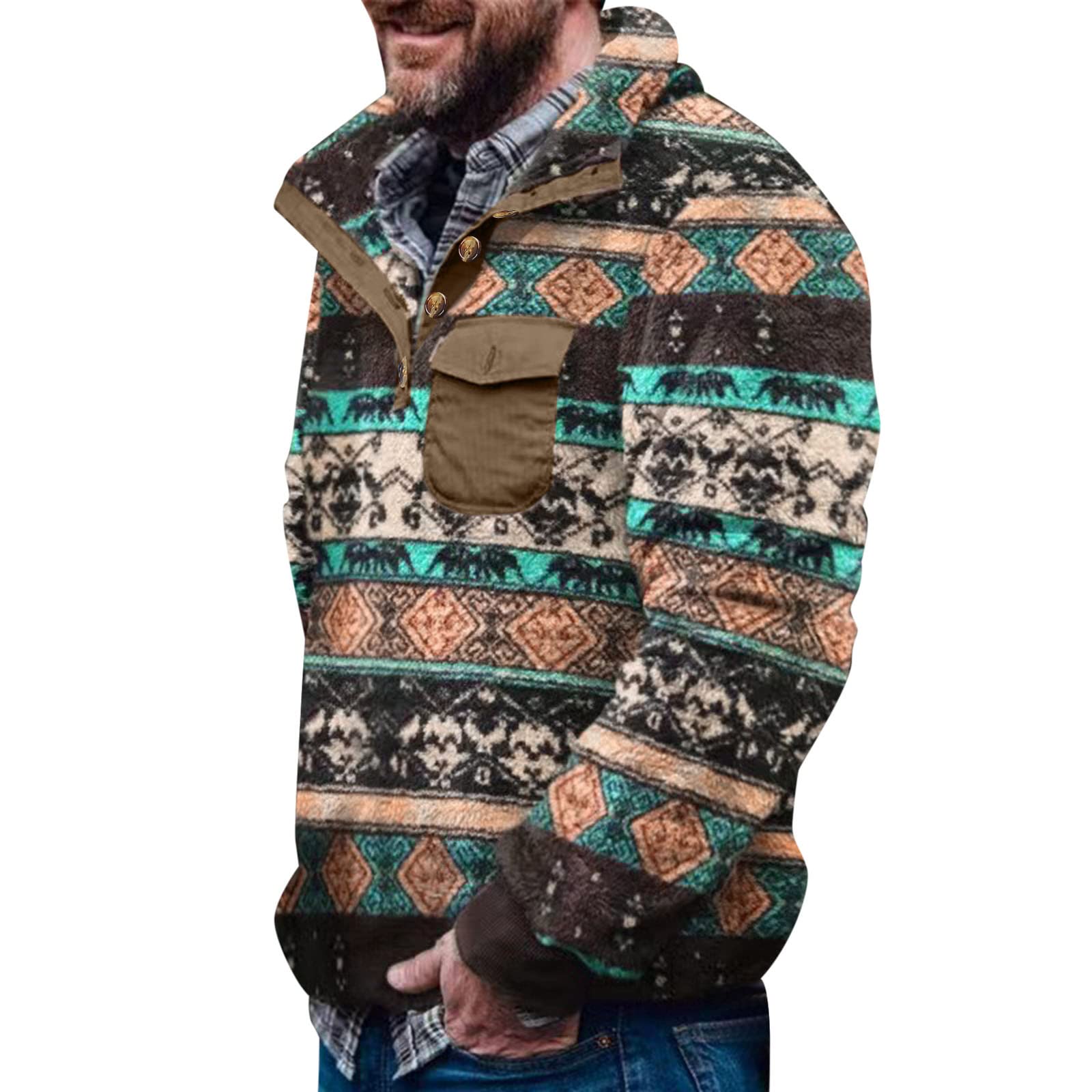 - Nrutup Mens Fuzzy Fleece Pullover Sweatshirt Aztec Print Button Up