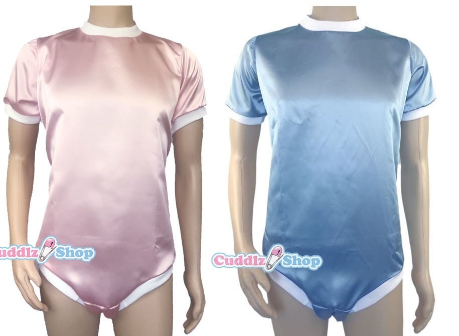 Cuddlz Pink, Blue or Black Satin Adult Short Onesie With Standard or Locking Zip For Men or Women Ladies or mens abdl Lockable