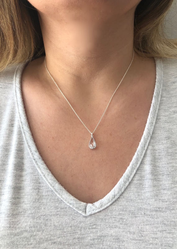 - Genuine White Topaz Pendant, Solitaire Pendant, April Birthstone Neckl