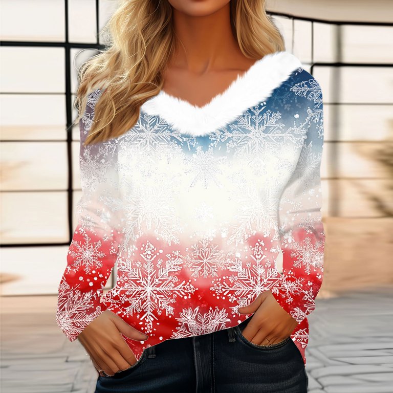 Women's Christmas Snowflake V-Neck Sweater Festive Holiday Long, Size Chart for Shoes TheOlawaleBrand Cheap Sale