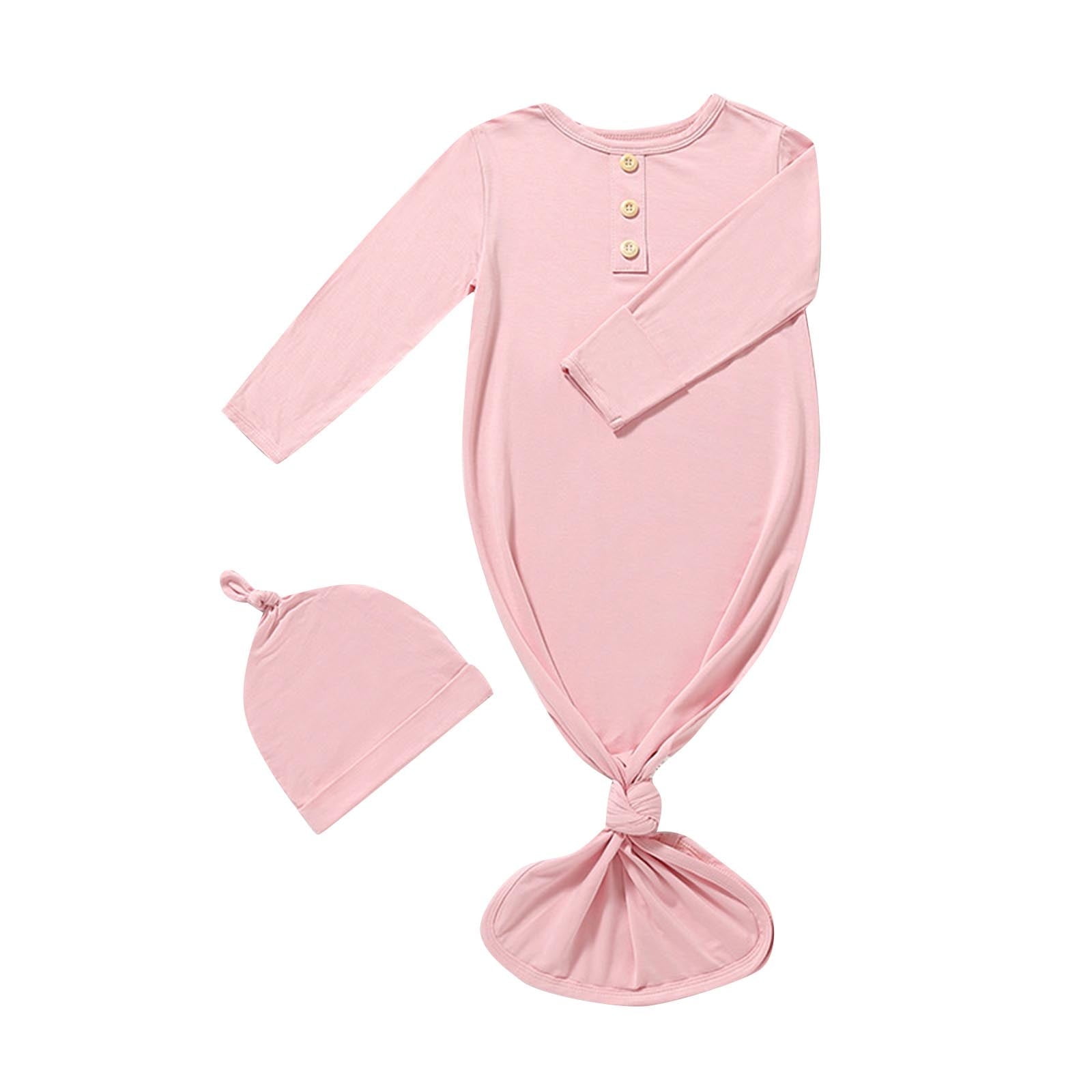 Newborn Baby Boys Girls Knotted Gown with Hat Set, Unisex Infant