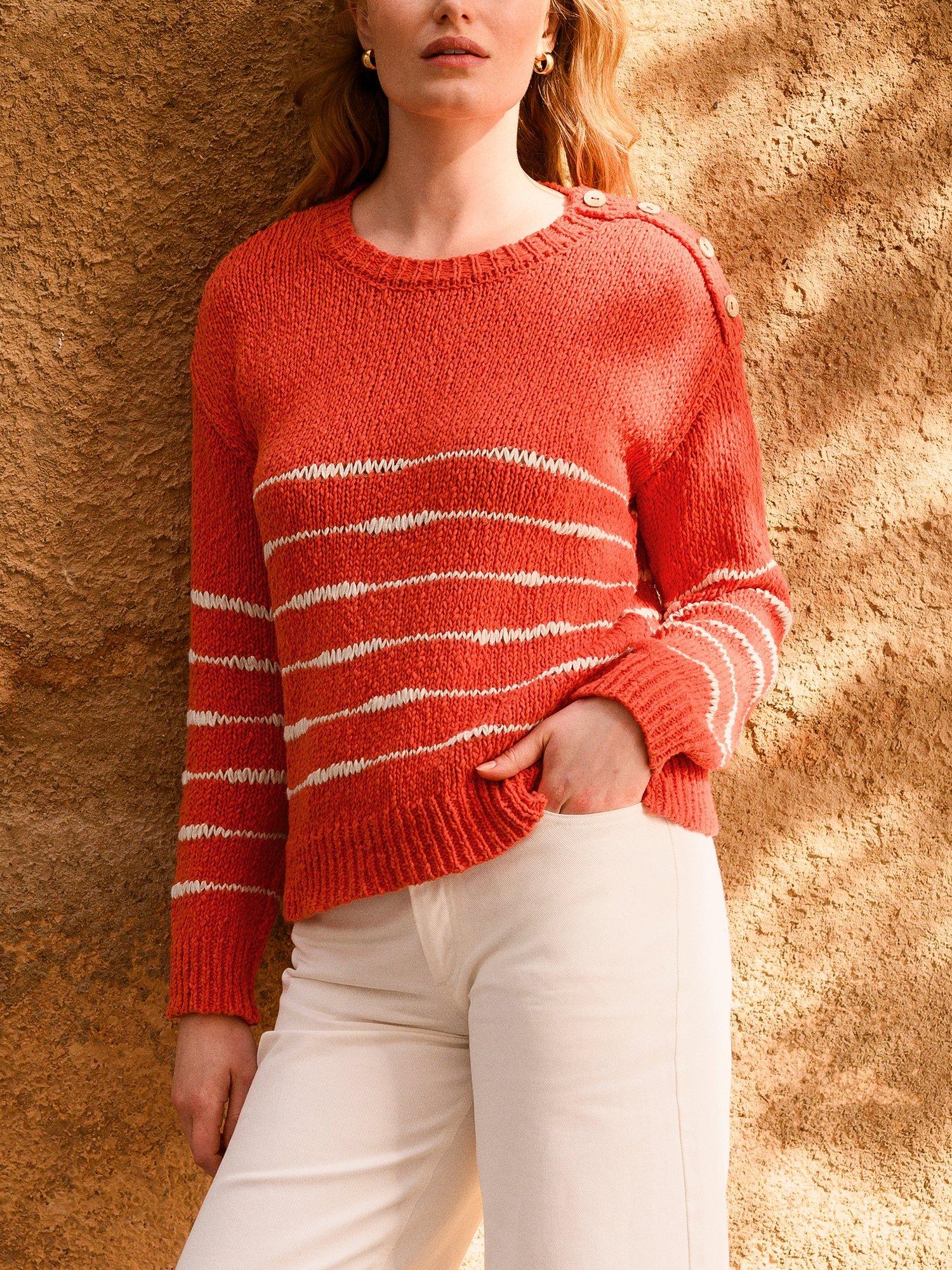Celtic Breton Stripe Drop Stitch Jumper, Navy/Red, Burnt Orange