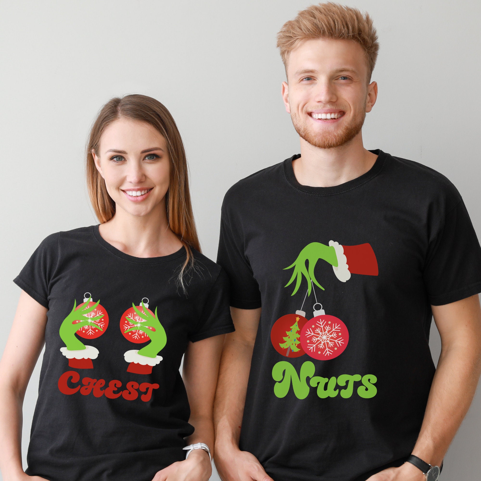 - Chest Nuts Couples Matching Shirts, Christmas Humor, Family Holiday Funny Saying Tee, Couple Shirts, Christmas Party t-shirt