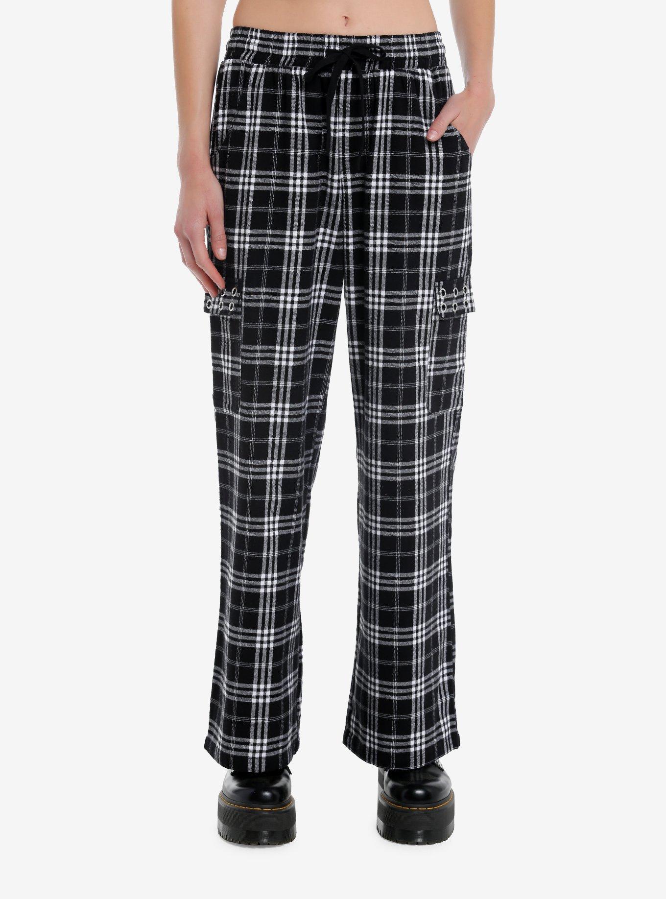 Black White Flannel Grommet Cargo Pocket Lounge Pants Hot Topic