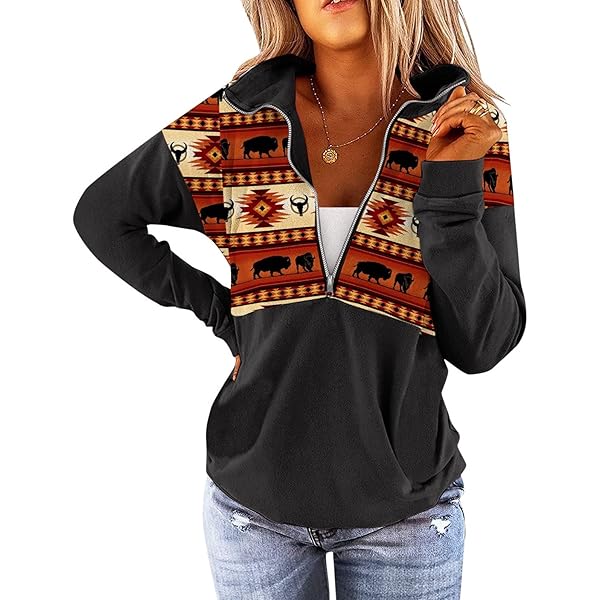 - Womens Long Sleeve Tops Western Aztec Hoodie Ethnic Print Hoodie