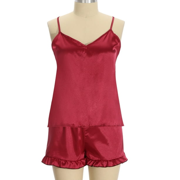 Satin Pajama Outfits for Women Sexy V Neck Halter Top with Ruffle, Size Chart for Shoes TheOlawaleBrand Cheap Sale