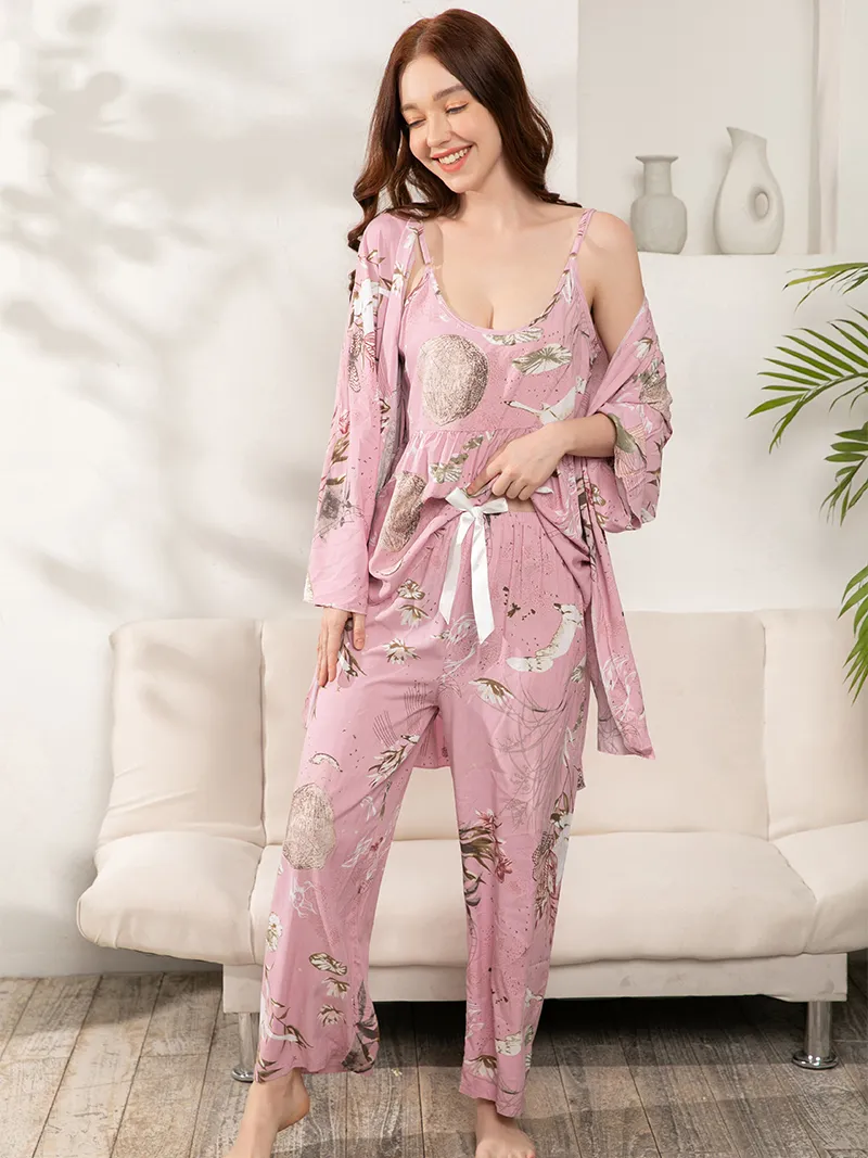 Viscose 3-Piece Pajama Set for Women: Comfy Loose Homewear