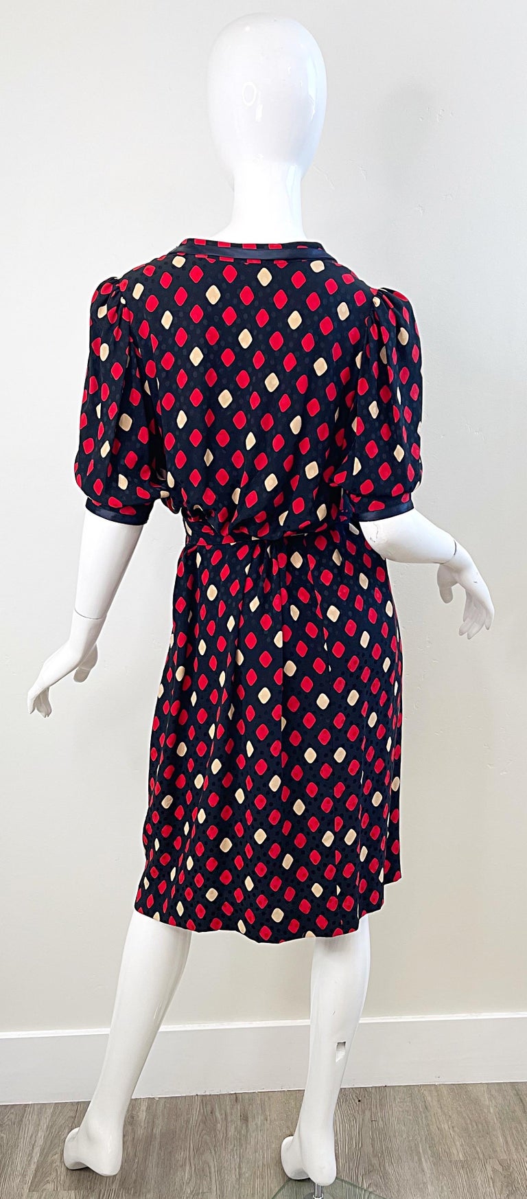 Yves Saint Laurent 1970s YSL Rive Gauche Black Red Diamond Print