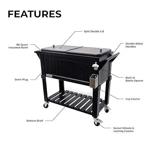 - Permasteel 80-Qt Antique Furniture Style Rolling Patio Cooler, Black