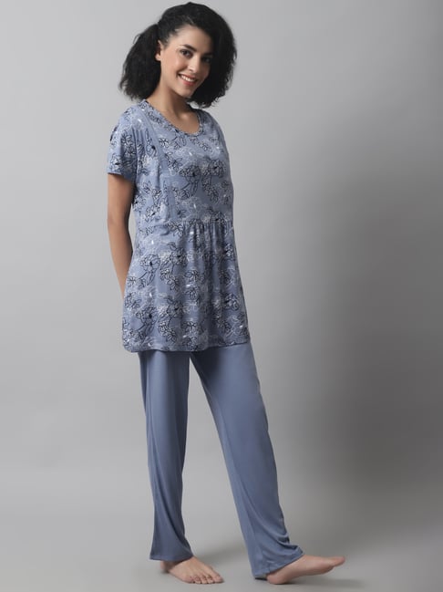 Buy Kanvin Blue Printed Top Pyjamas Set for Women Online Tata CLiQ