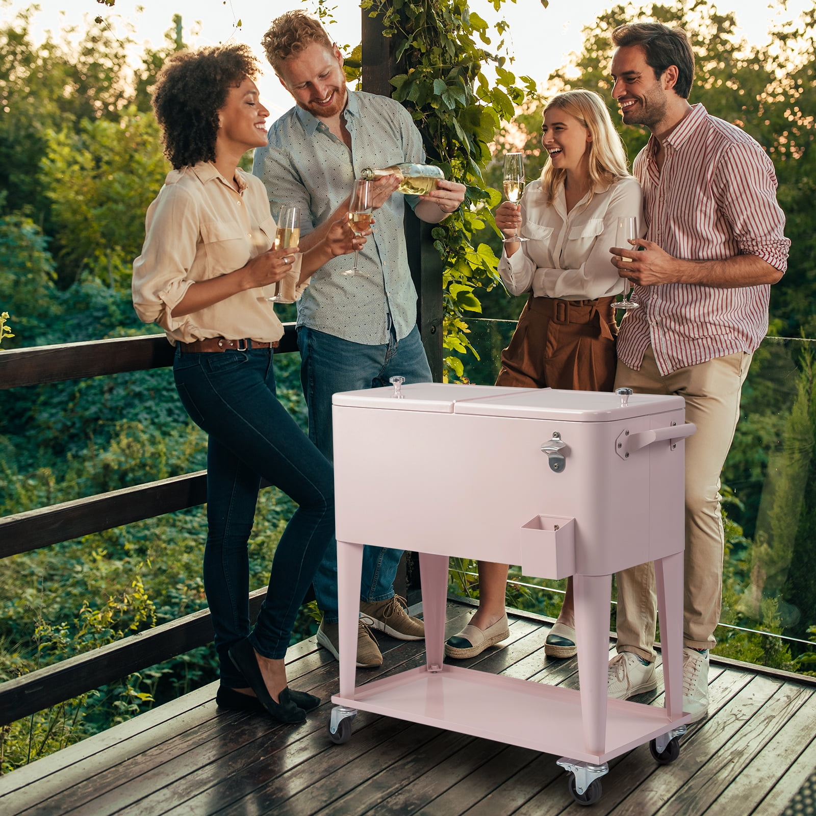 - 80 Quart Portable Outdoor Patio Rolling Cooler Cart Pink