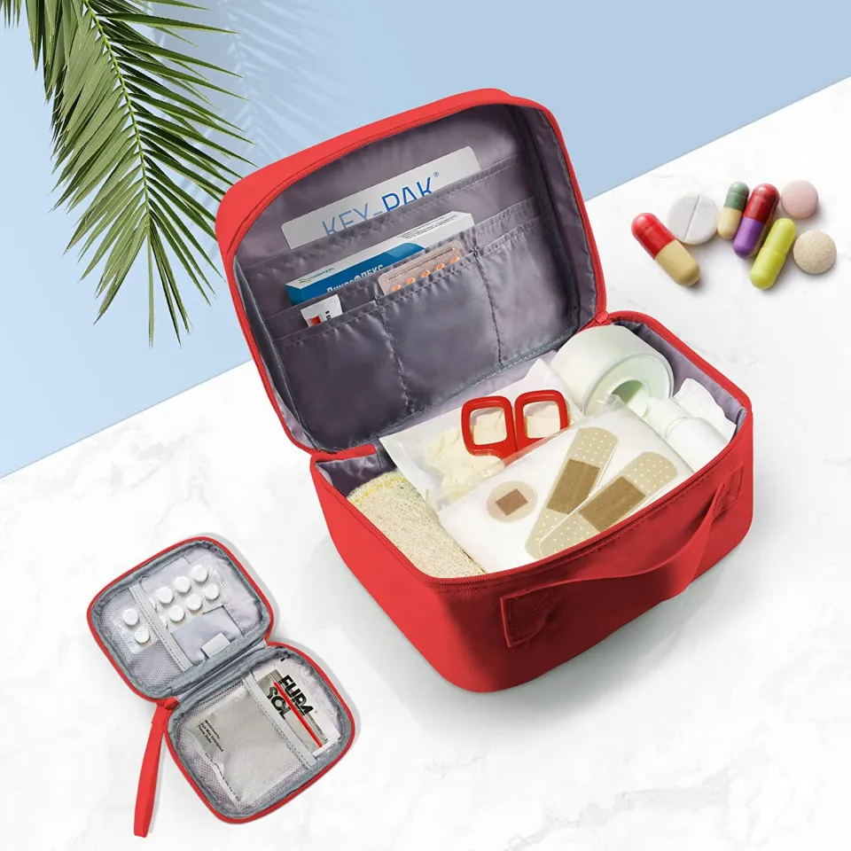 Portable FIRST AID KIT BAG Empty Organizer Travel Medicine Bag with a Mini Pouch Medical Supplies Bag for Home Camping Hiking Office