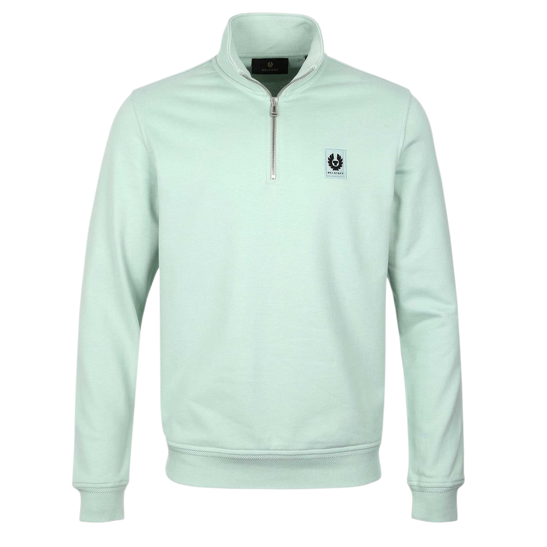 - BELSTAFF Cotton Fleece Mineral Green Quarter Zip Sweatshirt