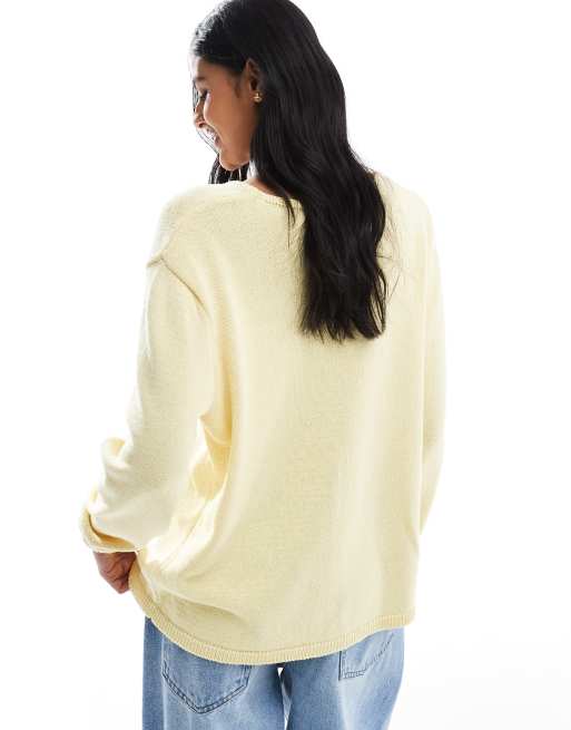ASOS DESIGN v neck knitted oversized tie front cardigan in buttermilk yellow
