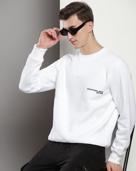 - Buy Calvin Klein Men White Crew Neck Brand Print Sweatshirt