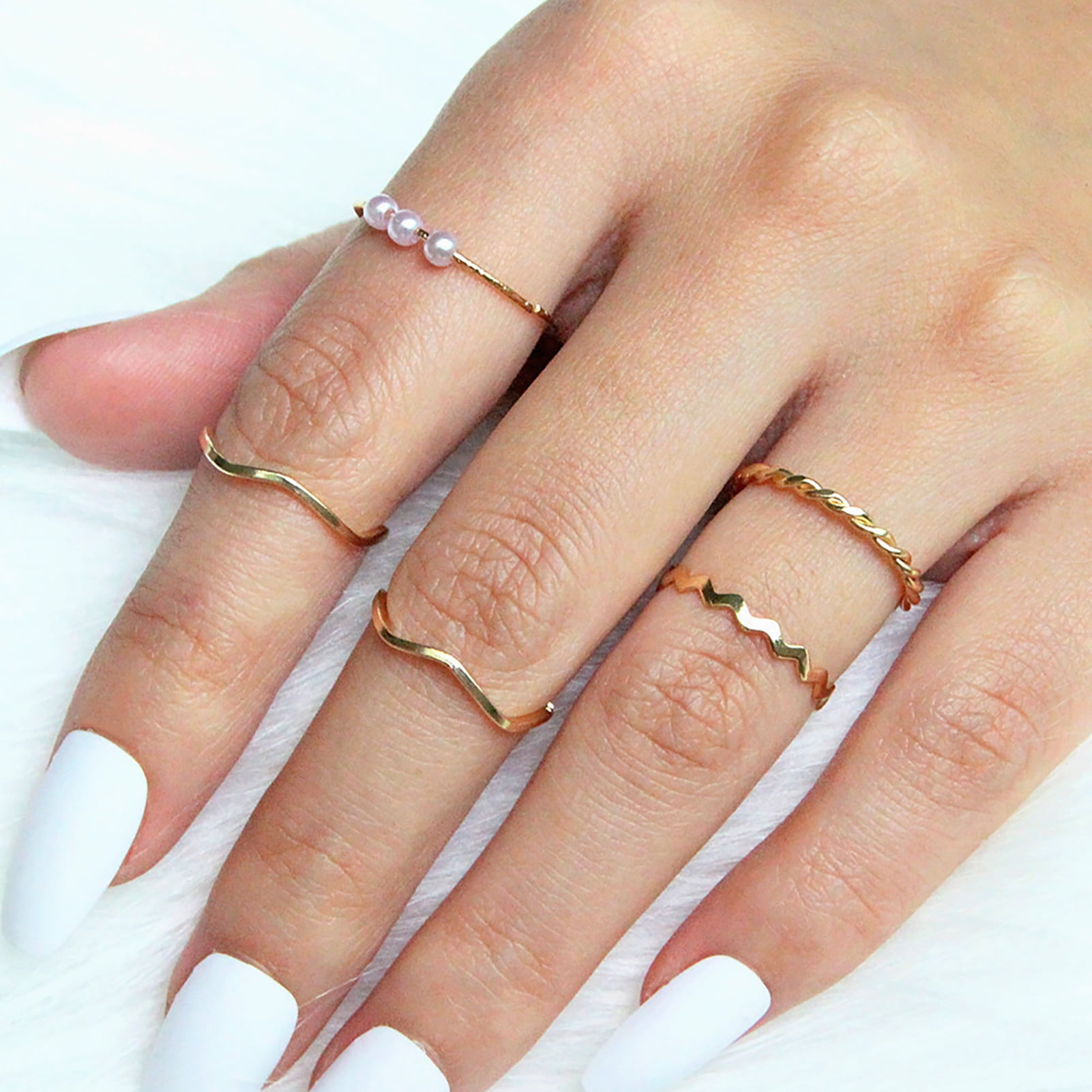 - Knuckle Rings For Women: Chic Gold Tone Midi Ring Set, Womens