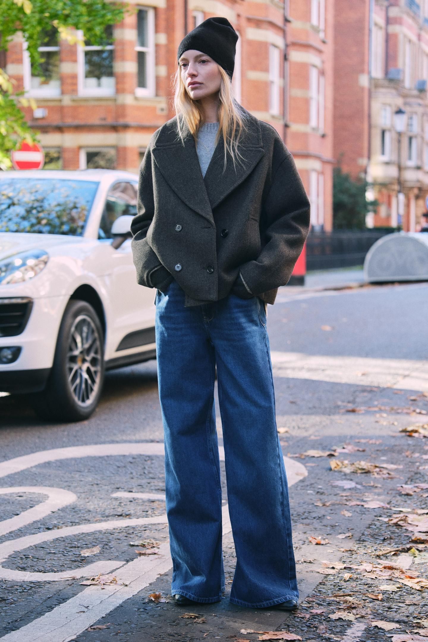 - ABRIGO CORTO PAÑO CON LANA Azul ZARA Chile