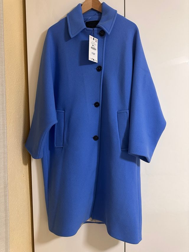 Abrigo oversize Zara Lana Manteco Azul clarito de segunda mano por