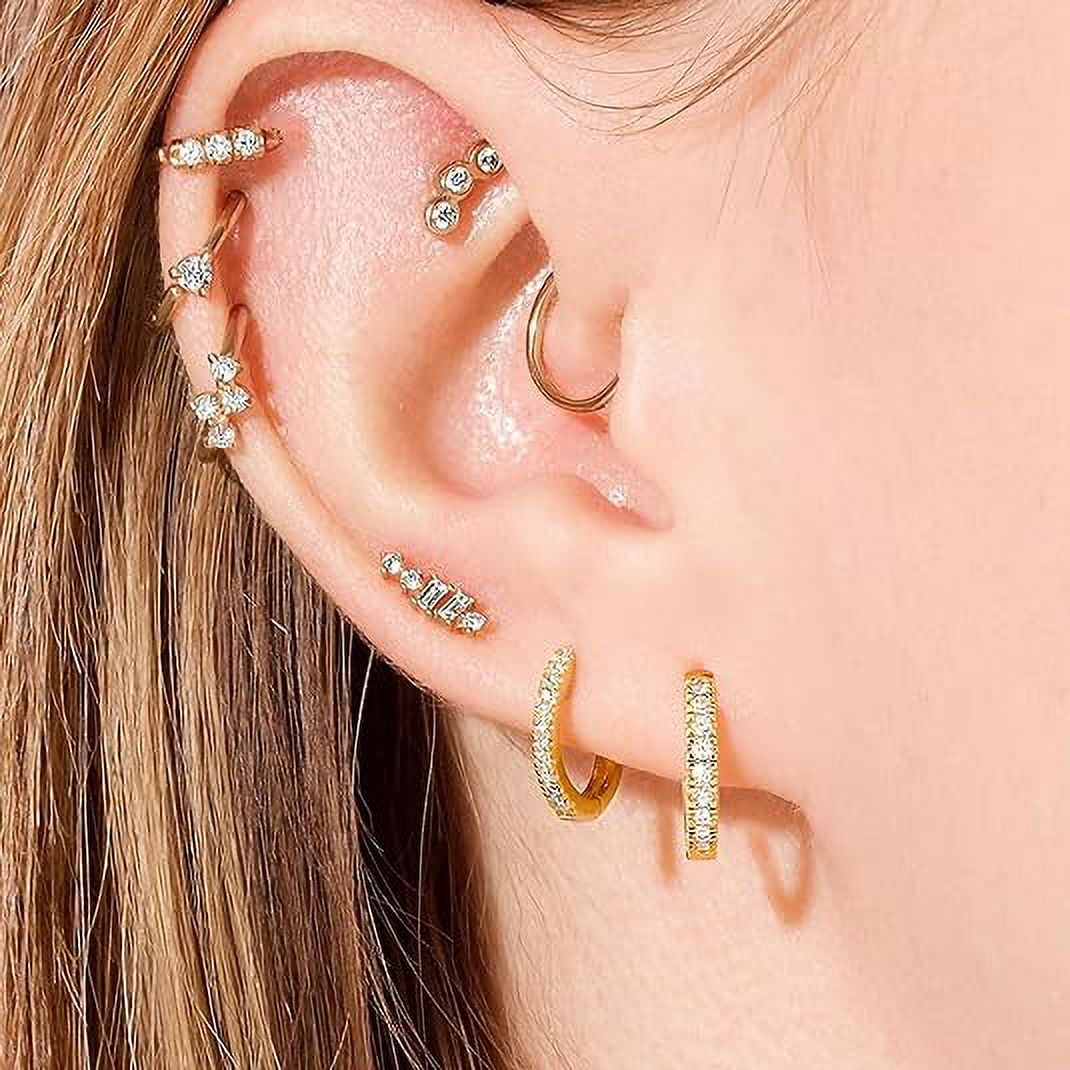 Piercing Oreja Gokeey Juego De Aretes De Aro Pequeu00f1os De Plata