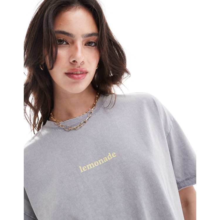 ONLY oversized t-shirt with lemonade back print in washed grey ASOS