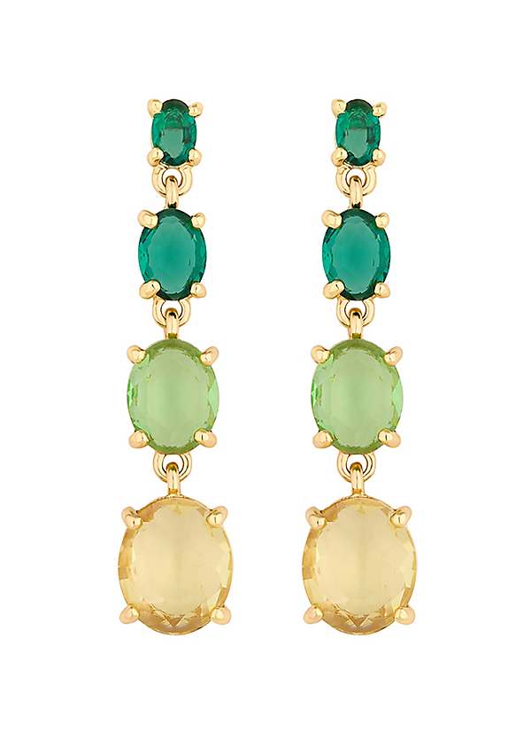 Gold Green Tonal Mixed Stone Set Drop Earrings by MOOD By Jon