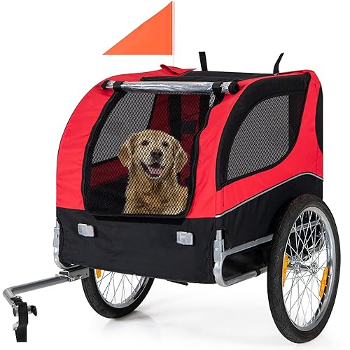 - PawHut Dog Bike Trailer Pet Stroller Cart Carrier for Bicycle 360° Rotatable with Reflectors Wheels Hitch Coupler Push/ Pull/ Brake Water Resistant