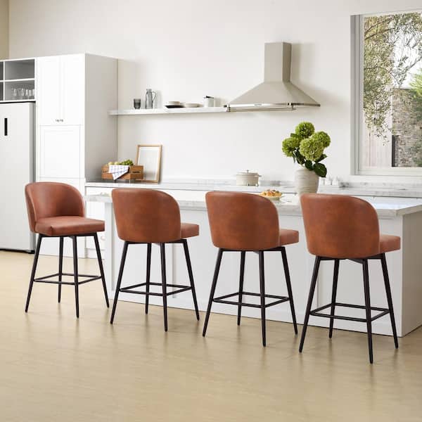 - Wood Faux Leather Barstool Gracie Modern Wood Light Brown Bar