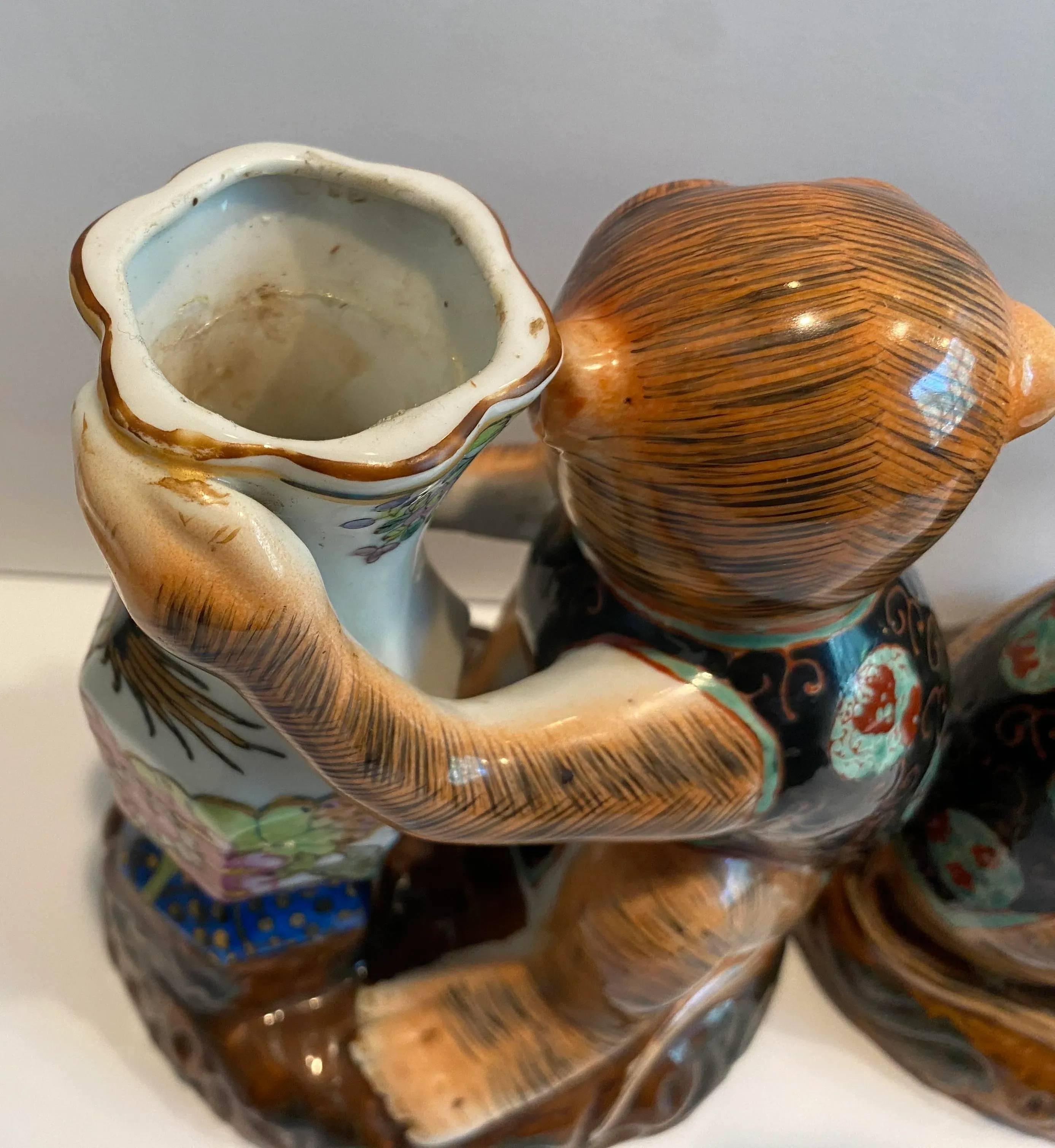 Chinoiserie Tobacco Leaf Monkey Vases- a Pair Chairish