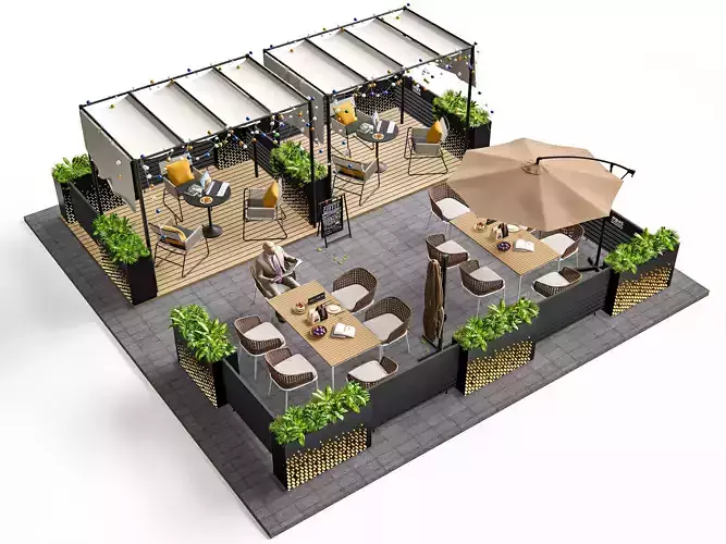 Outdoor Cafe and Restaurant Seating Elements 3D model