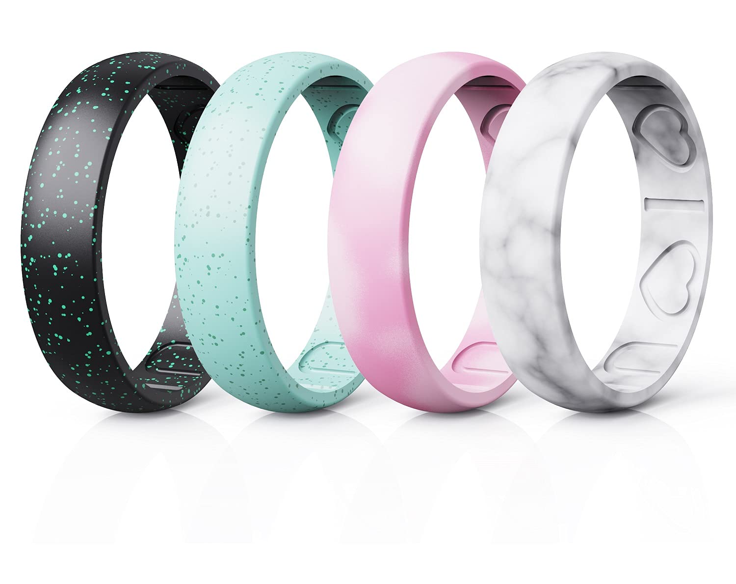 - Egnaro Inner Arc Ergonomic Breathable Design, Silicone Rings for Women with half sizes, Women's Silicone Wedding Wide