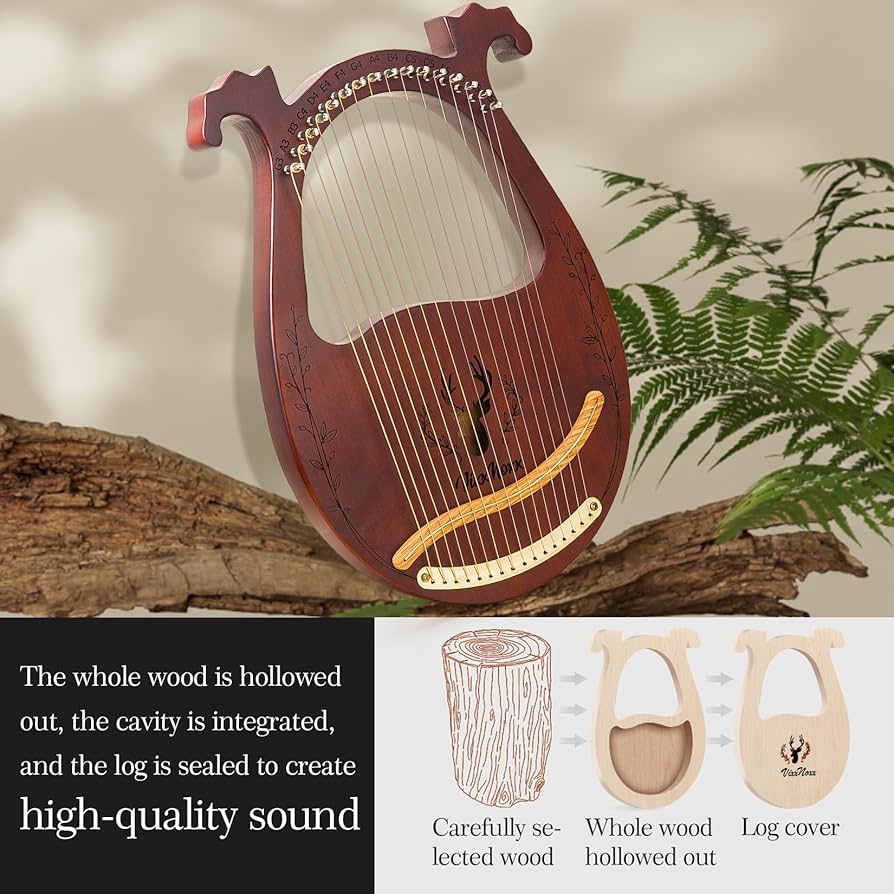 16 String Mahogany Lyre Harp With Tuning Wrench And Tunisia